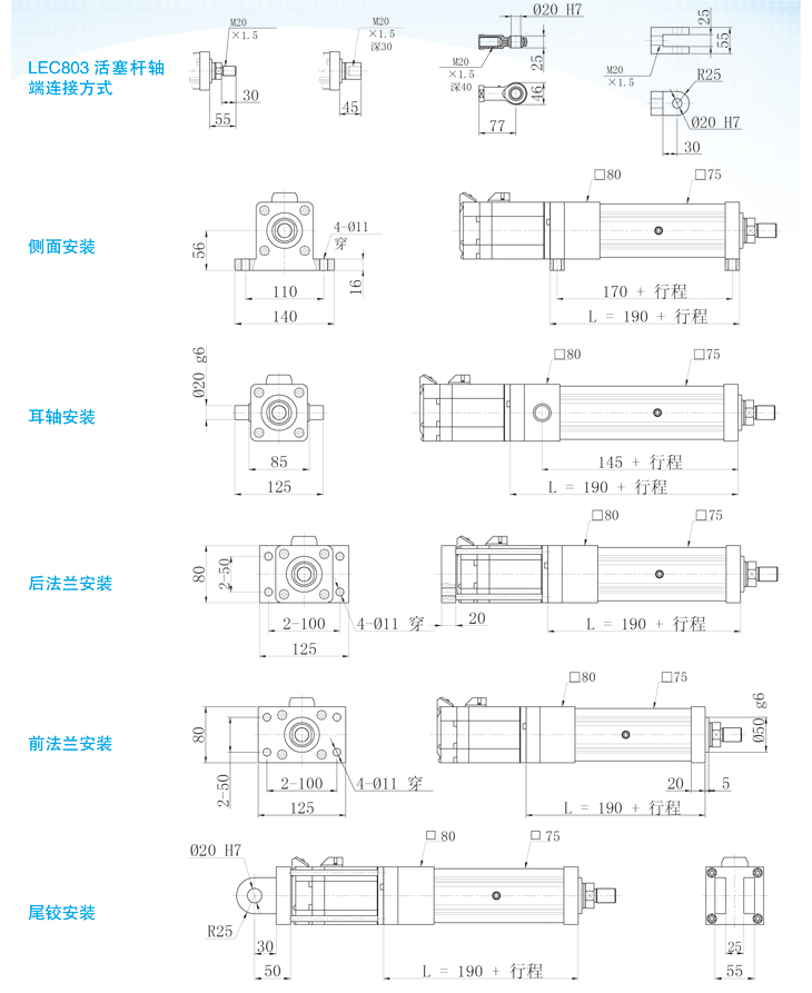 LEC803系列電動缸外形圖